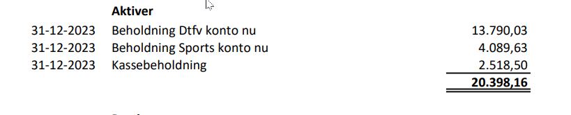 Aktiver dagens dato er: 30.300 hvilket skyldes alle lige har betalt medlemskontingent og sportskontigent samt sponsorat fra Jeyaraja. Alle takker for støtten fra Jeyaraja.